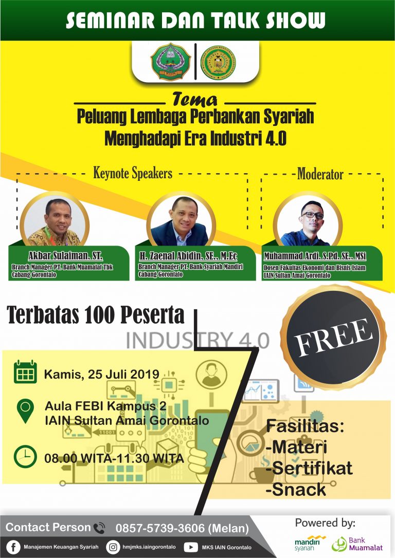 Kegiatan Seminar dan Talk Show dengan tema “Peluang Lembaga Perbankan Syariah Menghadapi Era Industri 4.0” oleh HMJ Manajemen Keuangan Syariah ini dilaksanakan pada tangal 25 Juli 2019. Pada kegiatan ini hadir sebagai narasumber yaitu Akbar Sulaiman, ST, selaku Branch Manager…