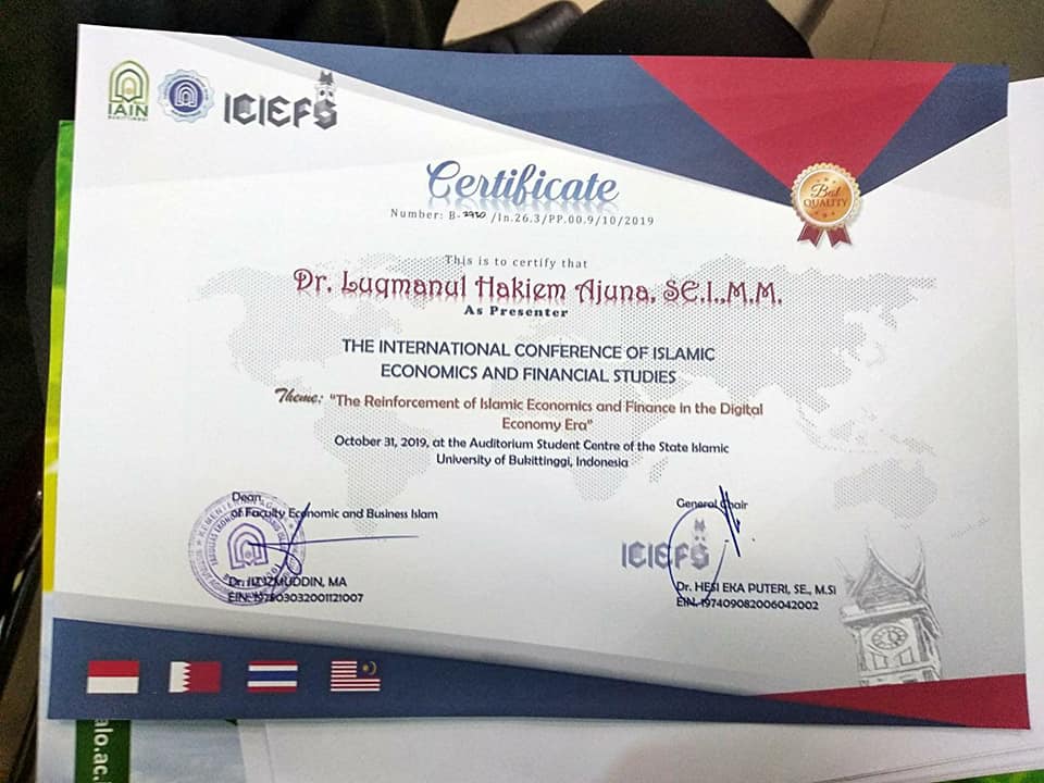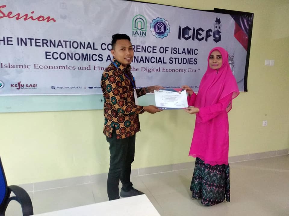 Pada International Conference Of Islamic Economics and Financial Studies (ICIEFS) yang diselenggarakan pada tanggal 31 Oktober 2019 di IAIN Bukittinggi, Sumatera Selatan, Ketua Jurusan Manajemen Keuangan Syariah, Fakultas Ekonomi dan Bisnis Islam IAIN Sultan Amai Gorontalo, Bapak Dr. Luqmanul Hakiem Ajuna, S.E., MM mempresentasikan papernya yang berjudul “The Relevance of Religious, Islamic Work Ethics, and Work Satisfaction of Syariah Financial Institute Employee in Gorontalo” yang merupakan hasil pemikirannya bersama Muhammad Ardi, S.Pd., S.E., M.M dan Fatmawati Luawo