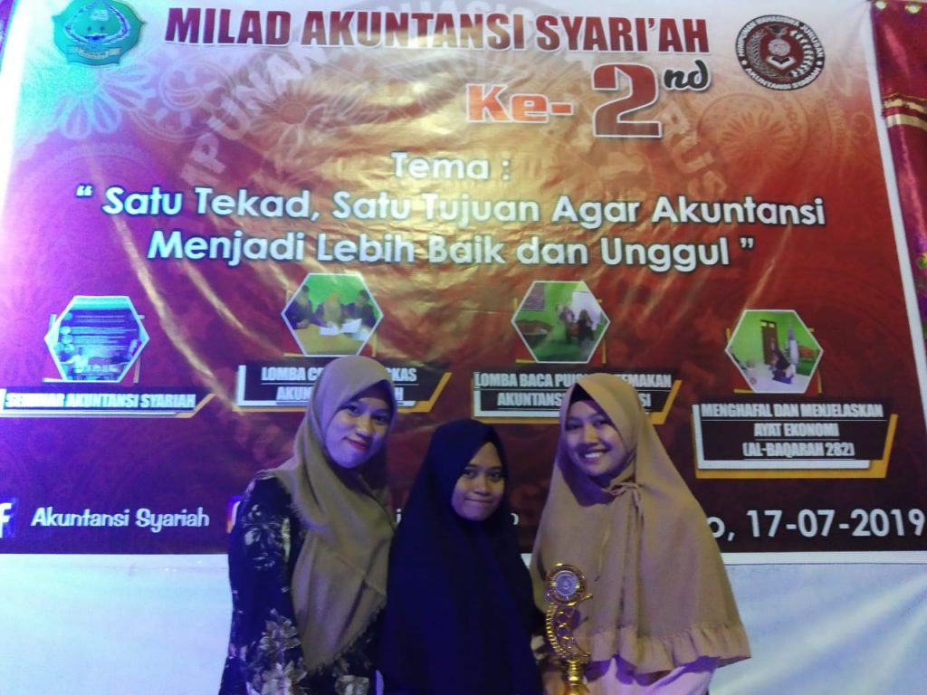 Pada acara Milad Akuntansi Syariah ke 2 yang dilaksanakan pada tanggal 17 Juli 2019, salah satu mahasiswa jurusan Manajemen Keuangan Syariah, Melani Musran meraih juara 1 dalam lomba baca puisi, melan sapaan akrabnya membacakan puisi dengan judul “Korupsi”.