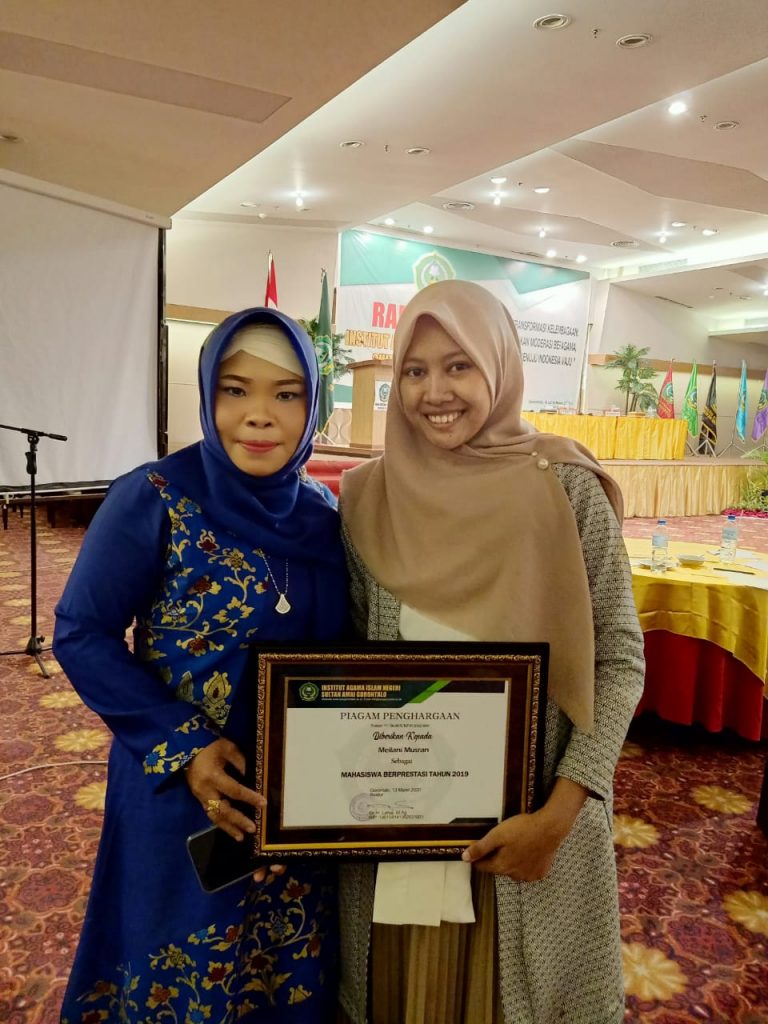 Di sela-sela kegiatan Rapat Kerja Tahunan IAIN Sultan Amai Gorontalo tahun 2020, Melani Musran mahasiswa Jurusan Manajemen Keuangan Syariah Fakultas Ekonomi dan Bisnis Islam terpilih sebagai Mahasiswa Berprestasi Tingkat Institut tahun 2019, tentunya hal ini merupakan suatu kebanggan tersendiri bagi Fakultas Ekonomi dan Bisnis Islam khsususnya Jurusan Manajemen Keuangan Syariah karena salah satu mahasiswanya terpilih sebagai Mahasiswa Berprestasi. Ketika ditanya tentang kesannya setelah terpilih dia menjawab ” Saya senang, bangga, terharu karena terpilih jadi mahasiswa terbaik. Walaupun saya merasa masih banyak yang lebih dari saya, dan mungkin prestasi mereka lebih banyak. Pesan saya untuk semua mahasiswa yang sedang menempuh pendidikan jangan pernah setengah” dalam belajar, harus tekun, santun, berbagi ilmu sama teman” jangan pelit ilmu, jangan tunda” pekerjaan/tugas. Kalau lelah/capek istirahat jangan berhenti. Mengeluh boleh, tapi jangan sering-sering. Intinya harus ikhlas” jawab Melani.